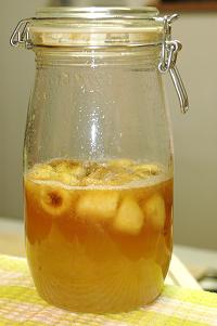 今日も暑い一日でした主人が仕事だったので、私と子供たち三人の休日です。長男は午前中、子供会の廃品回収の手伝いに・・・お手伝いのご褒美におやつとジュースをいただいて帰ってきました。暑いのにご苦労様その間、私と長女・次女は自転車に乗って近所をお散歩です。長女はこまなし、次女はこまありの自転車に乗っているので必然的にスピードの差がついてきます。そこで長女は私と次女がどこかに行ったのだと勘違いして大泣き勝手に猛スピードで駆け抜けて行ったのに泣くことはないだろ~って言いたいところでしたが・・・黙っておきました。昼からは近所の公園に4人で遊びに行きました。2時間半ほど遊んで帰ってくると、次女はクタクタ・フラフラ。お風呂に入れて、ご飯を食べさせると6時前には寝てしまいました。一人寝ると、断然楽ちんになります♪あとの二人も8時には寝るので、今日はゆっくり過ごせそうです昨日、バナナサワードリンクを仕込みました。1週間ほど前には義母からもらったパイナップルを、我が家はみんな食べないので仕込みました。今日、パイナップルサワードリンクを牛乳で割って子供に飲ませたら大好評でした!!簡単に作れるし、仕込んだら1週間から10日ほどで出来上がります。その間、一日に数回ビンごと振り振りするだけでok!長男と私はフルーツ大好きっ子なのですが長女と次女・主人はあまり食べないのでこんな風にエキスを抽出させたものを摂取するだけでもいいかなと思い作っています。それにお酢を加えるので疲労回復にも役立つので一石二鳥材料を入れて保存しておく「キャニスター」も可愛いものがあるし、漬け込むお酢も黒酢・りんご酢・米酢といろいろな種類があり、フルーツも好みのものを選べるし自分だけのオリジナルドリンクが作れます。