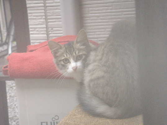 アッという間だったヒメちゃんを捕獲して、病院に連れて行って、里親さんを捜して・・・この間ほんの1週間ほど。・・・ヒメちゃん愛しのヒメちゃん☆今日、新しい里親さんに引き取られて行きました(*^_^*)かわいい1人娘を嫁に出したような気持ち?みたいです・゜゜・(×_×)・゜゜・。 もうちょっと遊びたかったなぁ・・・昨晩、母親の携帯に里親さんとの仲介役になってくれていた方から連絡がありヒメちゃんを正式に迎え入れてくれるとのお返事を頂きました。2,3日後に引き取りに来られると勝手に思い込んでいたので今日仕事から帰ったら、また遊ぼうと思っていたらヒメちゃんの姿はもうなかった・・・ちょっと寂しいけど、ヒメちゃんの新しいお家はマブちんの散歩コースの途中にあり我が家から1分もかからない所にあります。落ち着いたら、またヒメちゃんの姿やお話を聞けそうです(o^-^o) ****************************************************************ヒメちゃんは本当に3日ほどしか我が家に滞在しなかったのですがレオのことが好きみたいで、レオを大きな声で呼んだり側に近寄ると、手を出したり、ゴロゴロ言ったりととっても微笑ましいヒメちゃんでした。今朝はケージから出してあげて、レオをソロリソロリ。。。と追いかけてはレオから「シャァー」と威嚇を受けて退散することを繰り返していました。ちょっと寂しいけど、暖かいお家が出来てヒメちゃん良かったね♪幸せになってね☆ヒメちゃん見た後、レオ見るとブチャイク(*≧m≦*)ププッそうそう!レオに永久歯?が生えてきたもようです。ついにレオも仔猫卒業だね!