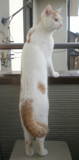 今日(ΦωΦ)レオを撮っていて気付いたことがあります。「青空をバックでレオを撮ったことがない・・・」そうなんです。自室のベランダで走り回ったり、スズメちゃんを追いかけて眺めたり・・・毎日レオがしているお気に入りの遊びなのに、写真撮ったことなかった。だからベランダで即席「レオ撮影会」を敢行 (= ̄▽ ̄=)V レオの胴が長いっ( ̄□||||!!・・・・んじゃ、もうイッチョウ行ってみようっ v(。・ω・。)ィェィ♪レオさん、UFOでも見つけたのでしょうか??? o(o|o)/シュワッチ!!どうやら違うみたいです・・・(・Θ・;)(;゜ロ゜)ハッ肝心な青空バックなレオを撮り忘れてました![◎]_・)ぱちりんこ♪撮れた(= ̄▽ ̄=)V バンザーイ \(≧∇≦)/\(≧∇≦)/\(≧∇≦)/\(≧∇≦)/ キャァ♪そんなにハシャイで・・・いいトシして大人気ないヨ(=^・・^=)