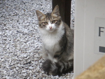 今朝は悲しい出来事で始まりました。朝8時半頃に洗濯を干している母が私の部屋にやって来ました。「あの子死んじゃった・・・」「あの子」とは、去年の暮れ頃から母がマーブルの散歩コースでよく見かけるようになった仔猫です。身体つきからしてまだ5,6ヶ月くらいでしょうか。その仔猫を見かけるようになった場所は物流トラックの仕分けセンターのような倉庫会社の多い道路でした。けっこうトラックのドライバーさんや、会社の方が野良猫ちゃんにえさやりをしていて、その中の1匹だったようです。そして年末から正月にかけて、その会社の方たちが仕事休みに入ったのでえさをもらえなくなったようで、我が家の庭に痩せっぽちな身体でその仔猫は現れました。そしてそのまま居心地が良かったのか、早朝どこからか現れてそのまま我が家の車庫の片隅で日中寝るようになりました。その仔猫は母が車庫から車を出し入れしようがお構いなしで、微動だにしませんでした。今まで長年寝床にしている野良猫ちゃんはエンジンかけると逃げて行ってしまうのにその仔猫はやっぱり、元々車の騒音には慣れていたんでしょうね。仔猫は必ず毎日車庫で寝て、ご飯を食べて車庫で寝てたまにどこかにフラッと出かけて行き、また車庫に戻って寝る。そして昨日、母と買い物に出かける時にその仔猫を携帯の写メで撮影し今日あたり日記に載せようかな?なんて思っていました。この仔猫は里子に出したヒメちゃんにソックリだったのでもしかしたら、ヒメちゃんと姉妹だったかもね!なんて母と笑っていました。きっと女の子だったと思います。今朝、母が隣家の庭を見るとその仔猫が寝ていたそうです。でもず~っと同じ格好なので、おかしいな?と思ってよく見ると仔猫が息をしていないことに気づいたそうです。そして、私を隣家の庭が見えるベランダへ連れ出しました。仔猫は確かに寝ていました。自然に横たわって寝ていました。まるで今にも起きてきそうなほど、自然に・・・仔猫は隣家の庭に停めてあった車に轢かれたか隣家の前の道路で車に轢かれたんだと思います。今日はベランダに出るのがツライですね。寝ているあの子の姿が目に入ります。これが自然の運命なんでしょうか?世の中にはもっと辛い境遇の野良猫がいる中でこの仔猫は幸せだったのかもしれません。我が家のレオ達は暖かい部屋のフカフカのクッションで気持ち良さそうに毛繕いをして寝ています。「あの仔猫とレオ達の違いって何だろう?」同じ猫なのに、同じ温もりを与えてあげられない。その温もりを奪ったのは私と同じ人間。今朝はレオのオバカ日記を書くつもりだったんですが思わぬ出来事が舞い込んできたのでとっても辛くて重い日記になってしまいました。レオのオバカ写真を載せる気持ちにもなれないので今日は文章のみであの仔猫の喪に服したいと思います。仔猫ちゃんへ今度生まれ来る時はきっと暖かい人間の懐に戻って来てね