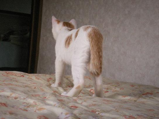 やっと風邪がなおってきた!って思ったのもつかの間でした。なんですか?この背中の激痛。しかも片側だけ・・・咳したらΣ(´□`;) ギャァ☆めちゃくちゃ痛くて、死ぬかと思えるこの激痛みなさんも気をつけて下さいね♪ということで、この2,3日愛猫たちと遊べていない(ノω・、) ・・・こういう時は多頭飼いは助かりますね!それぞれで思い思いに遊んでくれています。 見るとチカラが抜けるこのショット・・・( ̄∇ ̄;ウメ、「みょ~ん」と身体が伸びました(゜∇゜ ;)ウメのお気に入りおもちゃ、ゲッチュ~しました☆^∇゜) !!ウメの「お気に入りのおもちゃ」とは・・・「ドコモダケ」携帯買った時にオマケでもらった「ドコモダケ」ストラップ人形ちゃんです。ウメはこの「ドコモダケ」ストラップを爪に引っ掛けて放り投げて遊ぶのが大好きです。この遊びが始まると、他のニャンコは近寄れないほどウメはハッスルちゃんになります。レオも大好きなおもちゃがあります。「くまちゃん」です( ̄(エ) ̄)vレオはこのくまちゃんをくわえて、あっちの部屋、こっちの部屋・・・走り回っています。この「くまちゃん」見覚えのある方もいるかもしれないですね。登場は今回2回目です。1回目の登場はこちら捜していたら、レオの赤ちゃん時代の未アップショット発見!レオが生後1ヶ月ほどですね(^◎^)バブゥお腹がパンパン!(う○ちがいっぱい詰まっているハズだ!)レオたん・・・大きくなったねぇ(T-T )( T-T)ウルウル「まぁね。」(レオの背中の奥にちょこんと「くまちゃん」がいます。見えますかね?)レオたんは「くまちゃん」と大きくなったんだね。いつのまにか「くまちゃん」を追い越して大きく成長したんだね。「これからもよろしくね♪」