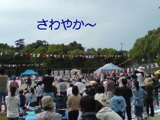 今日は甥っ子の運動会がありました可愛い孫の姿を観せるために義母を乗せて行きましたあれほどしつこく家を出る時間を言っておいたのにまぁ 何と1時間送れ^^;私は聞いてない の一点張り言い合ってもしゃーないのでナスがママ キュウリがパパよ ヽ(´・`)ノ 実は幼稚園の運動会しかも年少さん義弟には遅く出来た子供でうちの娘はとはいとこ関係になるけど25歳と3歳(爆)親子ほど歳が開いたいとこやねん晴れたり曇ったりで吹く風も爽やか緑に囲まれた中での運動会は気持ちよかったです延々と続く緑地公園の一角での開催でした久しぶりに観た運動会娘たちの頃を暫し思い出しました危なっかしい足元の子供たちを見ていると思わず笑みがでますねでも幼稚園児の運動会でありながら 一番盛り上がったのはお父さん方のリレー(爆)なんたって必ず転ぶんですからぁ (((ヽ(≧∇≦)ノ)))私たちのお弁当までアリガトね^^