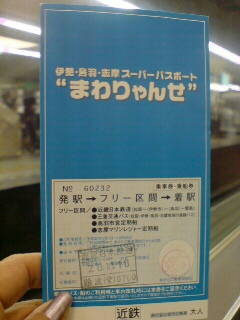 行って来ました これで ↓平日に行ければ最高なんやけど仕事の関係で土日になってしまいました私も土曜日休んだお蔭で今までに無いお土産の量に・・・お店のスタッフとはいつも良い関係で彼女は競技ダンスをやってる為 競技がある時は私が代わりに出勤しますお互い 持ちつ持たれつです^^短大入学した時からずっと交際が続いてる仲間との旅行結婚ラッシュの時期だけ流石に途切れたけど子供抱っこして集まりだしてから今に至ります一泊旅行は今回で三回目今が行き時と言いましょうか一番動きやすい年代なのかも難波から鳥羽まで約二時間おはらい町で途中下車おかげ横丁に行って来ましたハッキリ言っちゃえばお土産店通りなんやけどなああいう形をとれば客呼び込めるよね(笑)赤福餅の前は行列でした重くなるのでここでは買いませんでしただってコレって他のものに比べて何処にでも売ってる結局 旅館で買いましたが・・・↑銀行郵便局の前にあるポストですこう言うのって面白いね電車の中もバスの中も大盛り上がりなんしかオバチャン6人組やから~こわいよ ENTER