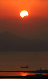西日本各地で部分日食 欠けたまま沈む夕日朝日新聞より 面白いねまるで三日月・・・その他はコチラ