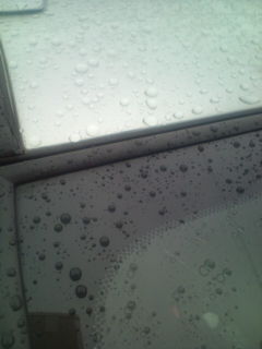 これが見たくて昨日の3時頃から洗車した雨の降る前に洗車するのが私の妙なクセ汚れた車に雨が降るとよけいに汚くなるジャジャ降りの時はスポンジ持って車擦りたい衝動に駆られる(爆)以前『はよ~終われよ~~ 雨降るぞ~~~』と見知らぬオッサンが言いながら自転車で通り抜けて行った事もあった^^;フロントガラスもしっかり水弾くよ~♪嫌いな雨降りやけど 私の密かな楽しみ (* ̄m ̄)プッ