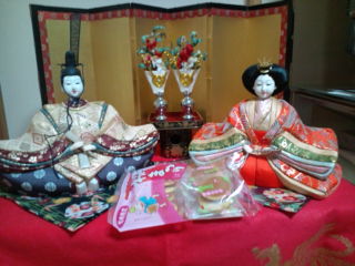 人形が全ての厄を代わりに受けてくれるそう母からの伝えで一応毎年家の何処かに飾っている出すのは良いけど片付けるのって結構面倒なのよね^^;で 最近はお内裏様だけ出すようになってしまった娘達のは元からお内裏様だけ母の手作りの木目込み人形ですお内裏様だけと言っても私のお雛様の軽く2倍の大きさ付属品を混ぜると結構場所をとると言う事で今年も付属品は無し私のお雛様の金屏風をチョイス居間のテレビの横に飾りましたついでに私のお雛様も・・・これは玄関に・・・超レア物だけど(笑)一応段飾りこれもお内裏様だけが出演^^;昔のは小さいけど精巧に出来ている扇は広げられるし刀も抜ける新しいものは綺麗だけど古いものはそれなりに味がある新しいものに無い魅力がある人もそうだよね若い子は綺麗でピチピチしているけどそれなりの年齢を経た人は(爆死)知れば知るほど愛しいものがある美味しいよ♪だろ? ( ̄ー ̄)ニヤリッ いつもありがとうございますポチっとよろしく m(__)m