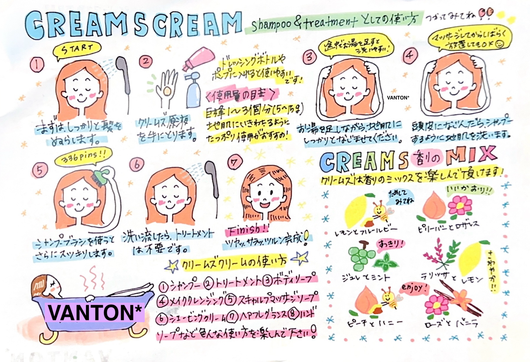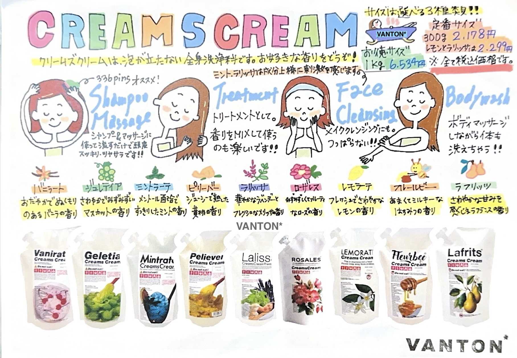 クリームクリームは全身を洗うことのできる泡のたたないシャンプーです!