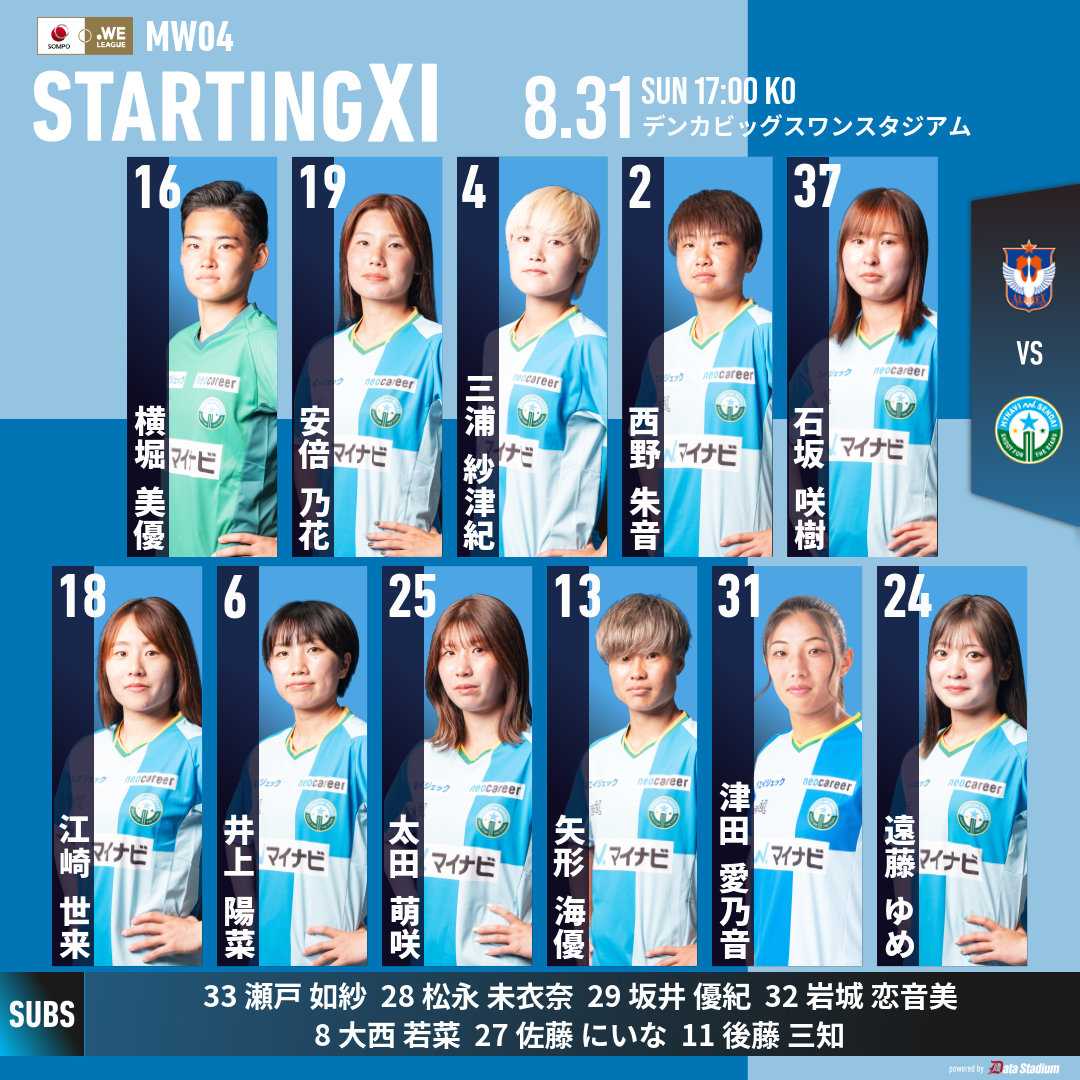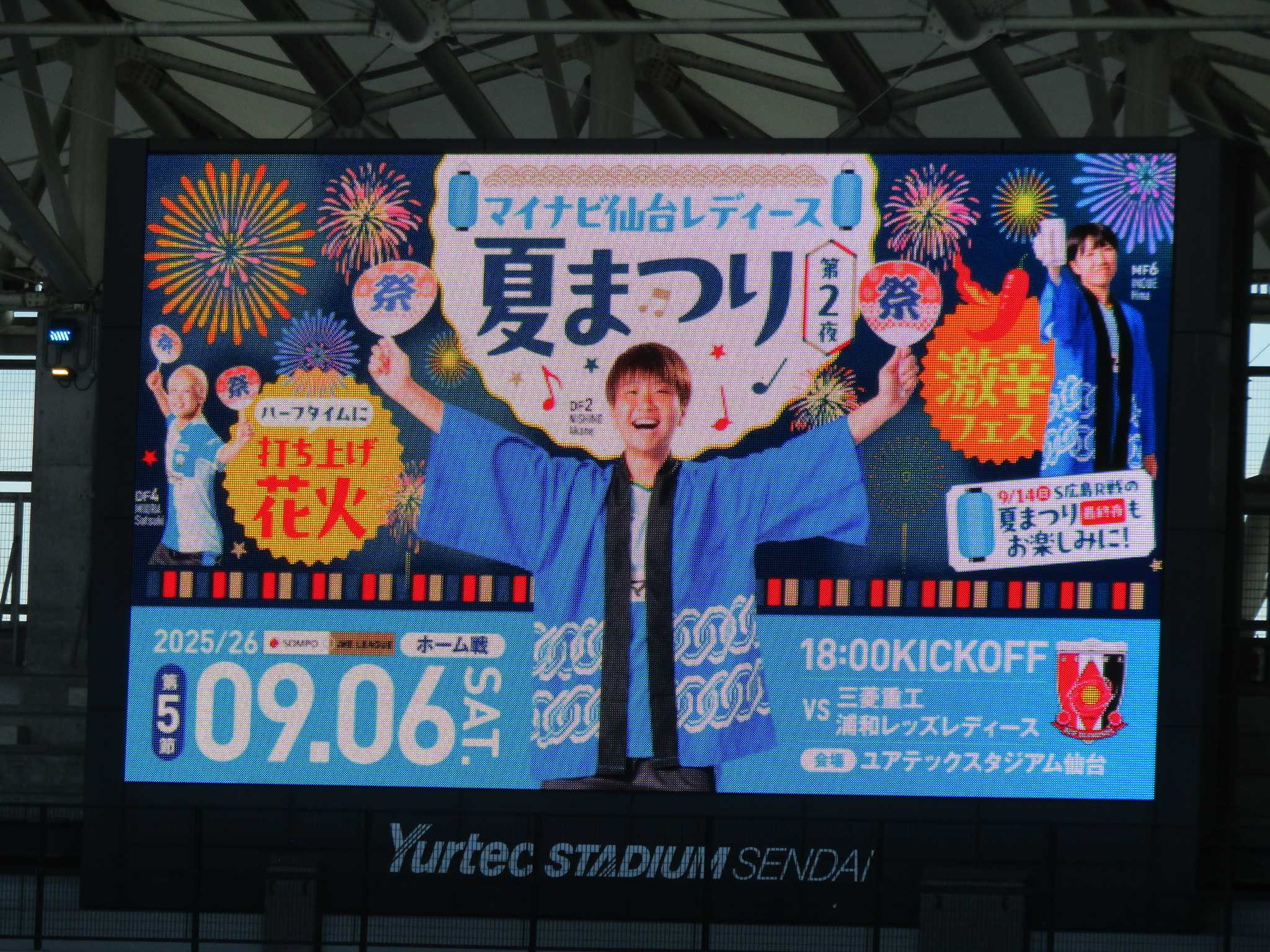 2025/26 SOMPO WEリーグが先週末に開幕した。マイナビ仙台レディースは昨シーズン2連敗で1勝も出来なかったセレッソ大阪ヤンマーレディースとアウェーヨドコウ桜スタジアムで対戦した。◎ 仙台 0-0 C大阪 公式記録 マイナビの正GK清水と伊藤は怪我で長期離脱中とGKは新人の横堀ひとりだけ。控えにはユースの瀬戸が控えに入った。スタメンを見れば大分変り若返りましたね。ゲームは互いに決め切れず0-0のスコアレスドローで終えた。 次節16日(土)はホームユアスタにAC長野パルセイロ・レディースを迎えてホーム開幕戦を戦う。この試合は宮城県民は無料招待ですので是非とも応募して3000人は超えたですね。キックオフは18:00。 16日当日は隣の七北田公園で手持ち花火遊び、ユアスタ目の前の七北田川で宮城県最大級の町内会主催花火大会 市名坂夏まつりが開催されます。この花火大会は私が一番楽しみにしている花火大会でユアスタ前の冠橋から見ると着火から全て見られ、最近では多くの見物客が訪れユアスタ東ゲートで見物する方が多いです。点火はちょうど試合が終わるかアディショナルタイムの時間帯と重なると思いますので試合に勝って祝砲と行きたいですね。