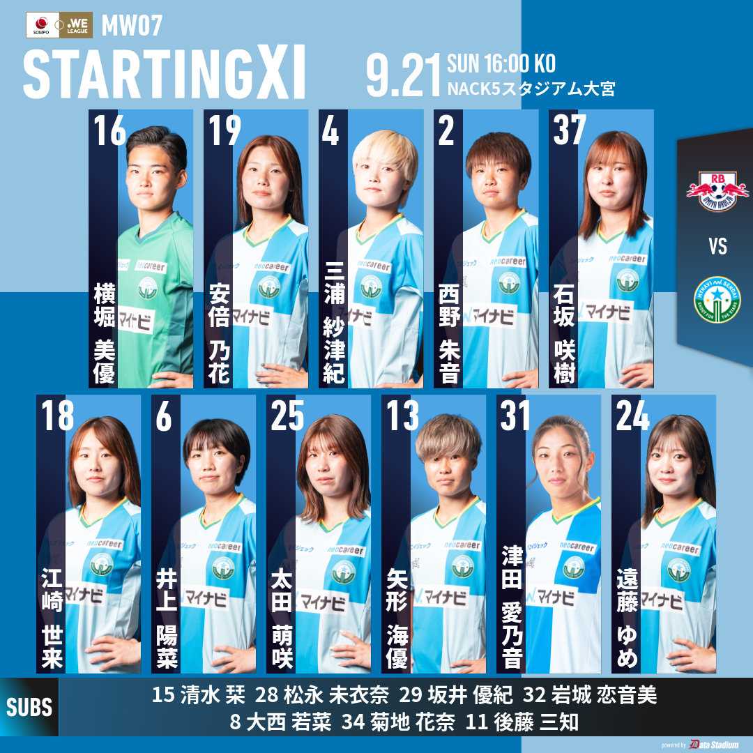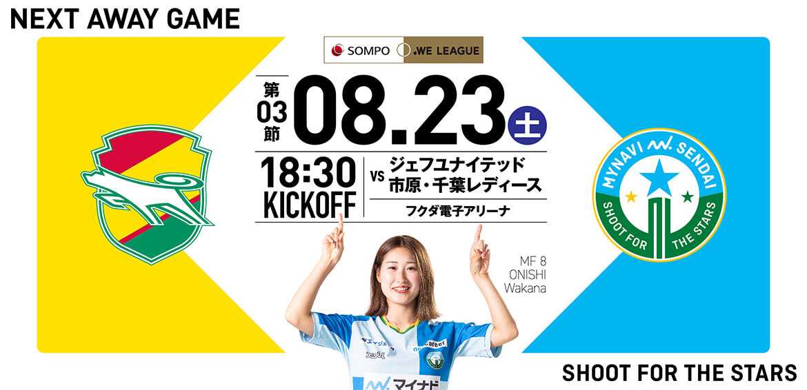 マイナビ仙台はアウェーNACK5スタジアム大宮でのRB大宮アルディージャWOMEN戦に挑んだ。◎ 仙台 1-1 大宮 公式記録 前半39分石坂選手の右CKから三浦選手のヘットでの折り返しを矢形選手が左足で2試合連続となるゴールで先制した。 しかし86分に同点ゴールを決められ1-1のドローで試合終了。 次節27日(土)はホームユアスタにノジマステラ神奈川相模原を迎える。今節よりデーゲームとなりキックオフは14:00。