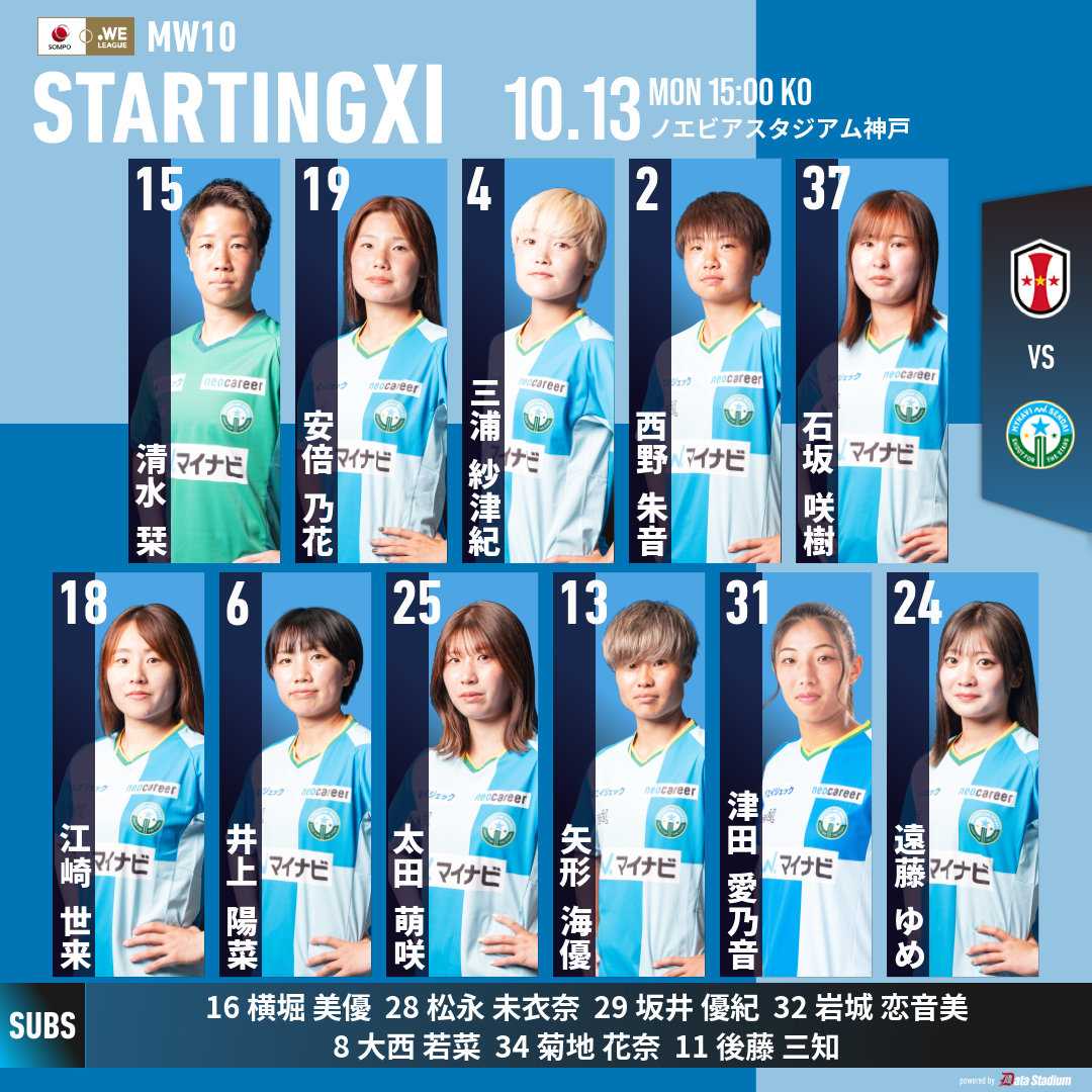 アウェーノエビアスタジアム神戸でのINAC神戸レオネッサ戦へ挑んだ。◎ 仙台 0-2 神戸 公式記録前半23分セットプレーからの流れの中で失点。僅か3分後の26分にはカウンターから失点。前半の2失点が響き0-2の完封負け。 次節18日(土)も強豪日テレ・東京ヴェルディベレーザをホームユアスタに迎える。キックオフは13:00。