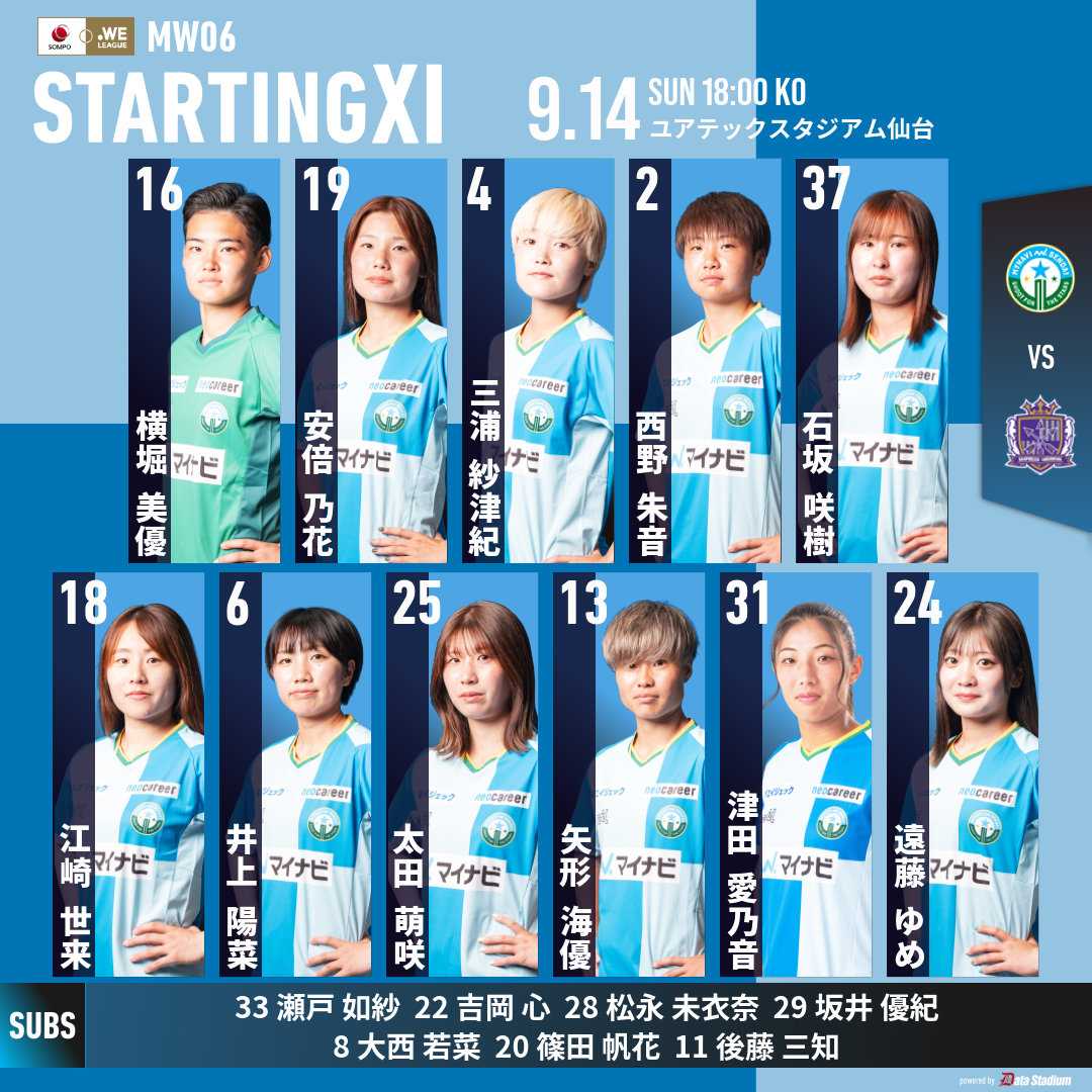 昨シーズン終了後に引退した選手や退団した選手など多くがチームを去りましたが、新たに今週末のWEリーグ開幕に向けて新加入選手が契約に至りました。◎ 新加入選手注目は昨シーズンWEリーグ日本人得点王の矢形選手がC大阪から仙台に復帰、更に坂井選手も戻って来ました。ユース 津田愛乃音選手、菊地花奈選手 トップチーム昇格内定、更にユース所属7選手トップチーム登録(育成組織TOP可選手)されました。 続いて昌平高校所属の松井美優選手と日体大SMG横浜所属の篠田帆花選手の加入内定が決定し2025年JFA・WEリーグ/なでしこリーグ特別指定選手として承認されました。◎ 大崎八幡宮で必勝祈願 昨シーズンの最下位から今シーズンは3位以内を狙う、リーグ開幕を9日(土)ヨドコウ桜スタジアムでのセレッソ大阪ヤンマーレディース戦に挑む。キックオフは18:00。