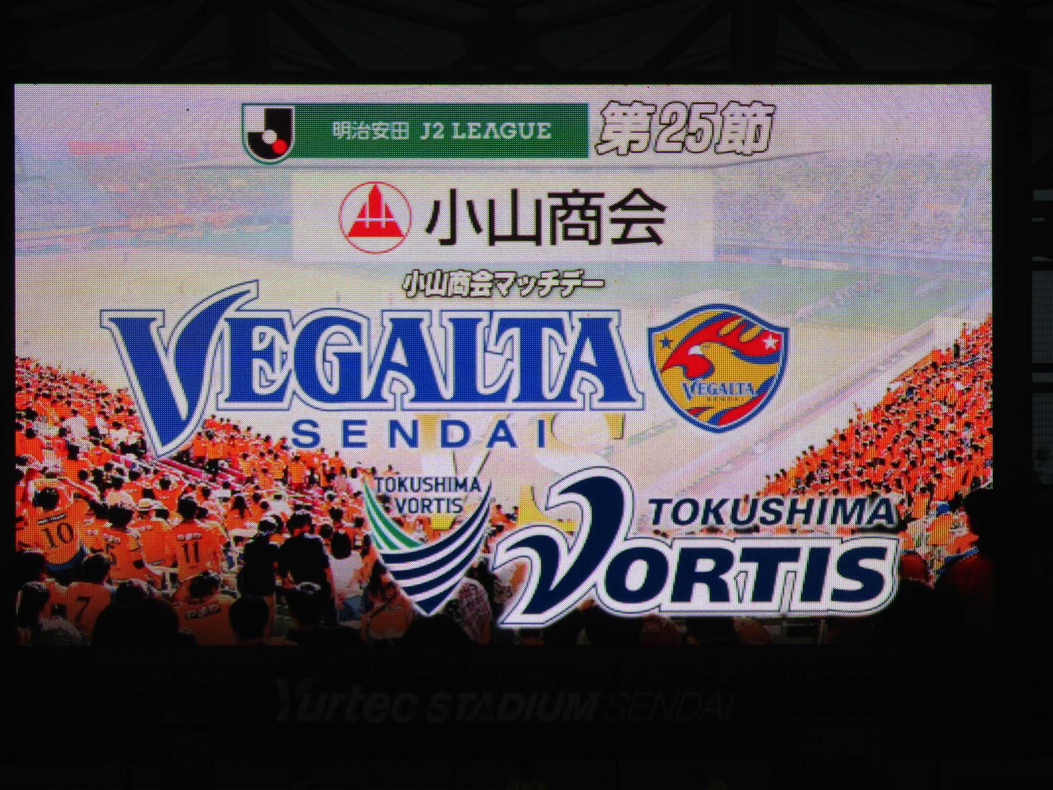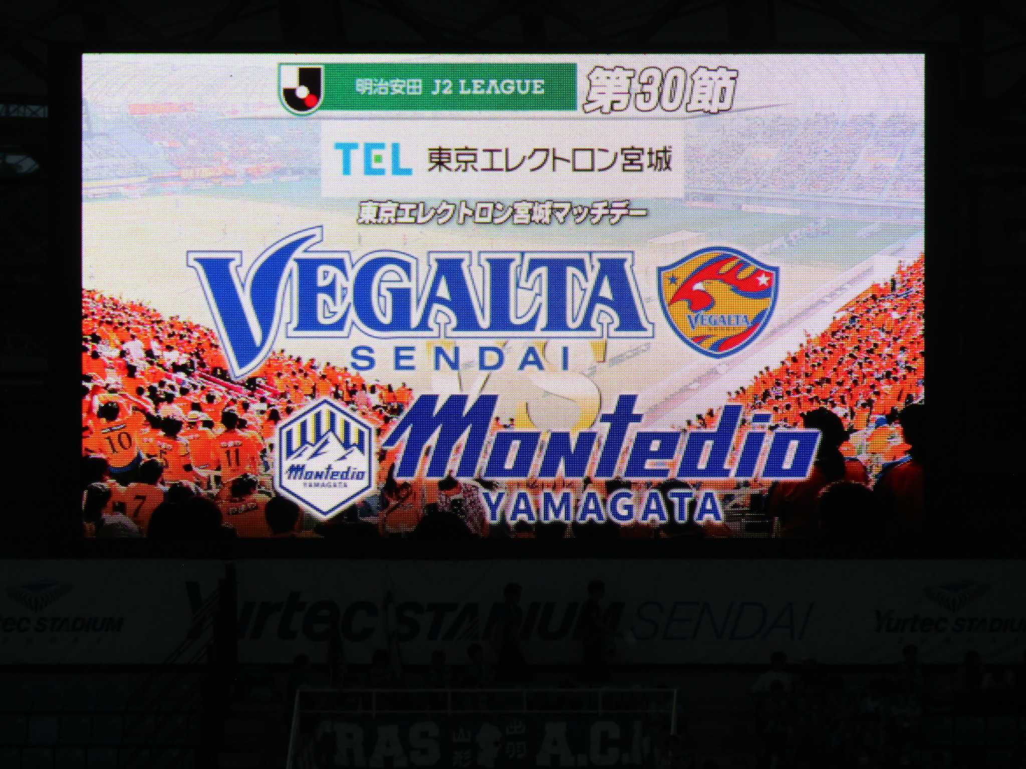 ホームユアスタにカターレ富山を迎えた。チケットはシズーン途中の異例中の異例、ビジター指定席以外ほぼSOLD OUT。仙台MF鎌田大夢選手の兄でもある日本代表MF/FW鎌田大地選手も弟の活躍を見にユアスタに来ていました。試合前にはピッチ上で元仙台監督の手倉森氏、OBの梁、富田、萬代の3氏のトークショー。 同じくピッチ上で携帯見ながらくつろぐ富山の選手。 ◎ 仙台 0-1 富山 公式記録今節もコイントスでコートチェンジ。富山のシュート3本に対して富山に17本シュートを浴びせるもポストに嫌われたりとネットを揺らす事が無く、富山のCKのワンチャンスを決められ0-1と7戦ぶりの敗戦。同じく自動昇格を狙う千葉と大宮も敗れた為に2位はキープ。 試合途中にオーロラビジョンに本日の来場者数が放映されましたが15,217人??、間違って甲府戦の来場者数が放映された為に訂正版18,049人が放映されました。 次節12日(土)アウェー藤枝総合運動公園サッカー場での藤枝MYFC戦に挑む。キックオフは19:00。