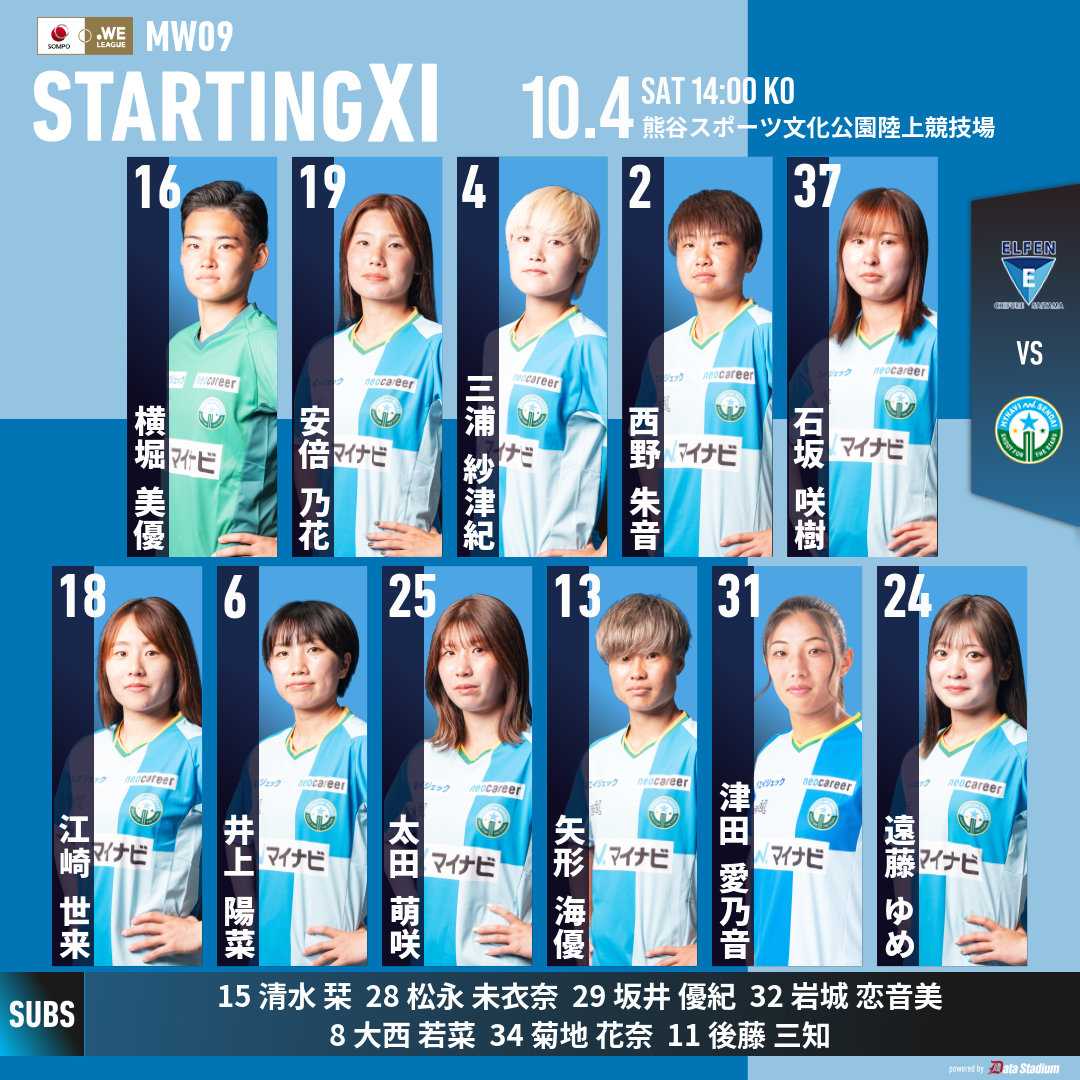 マイナビ仙台はアウェー熊谷スポーツ文化公園陸上競技場でのちふれASエルフェン埼玉戦に挑んだ。◎ 仙台 3-1 埼玉 公式記録前半はスコアレスで後半に入り、60分に矢形選手、63分に遠藤選手と立て続けに2得点した。 69分に失点するも86分にユースの津田選手が止めのゴールを奪い3-1で勝利してリーグ4位に浮上した。 次節より強敵INAC神戸レオネッサ戦、日テレ・東京ヴェルディベレーザ戦と続きます。次節13日(月・祝)アウェーノエビアスタジアム神戸でのINAC神戸レオネッサ戦に挑む。15:00キックオフ。