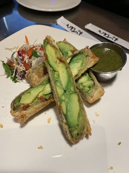 アボガドのフライに食欲UPするも、苦手のパクチー入りディップで私のみ終了・・・