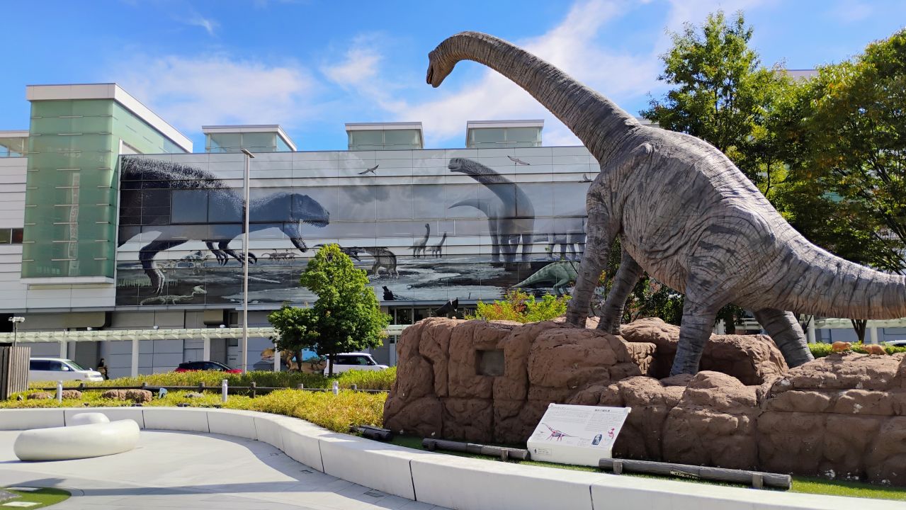 今回はとにかくインバウンドツーリストが多いとのことで、なるべく人混みを避けたかった我家は、関西からそう遠くない所で混んでなさそうな所と考えて思いついたのが福井県。 以前、転勤族のお友達が福井に住んでて、福井の話を熱弁していた事をふと思い出したんよ。今まで、福井県へ行ってみようと思ったこともなかったけどちょうど東京から福井まで新幹線が開通したばかりで、テレビの報道番組でも福井、福井と盛り上がっていたので、福井って何があるんかなー? と思って調べたら悪くないかもー。福井って恐竜の化石発掘日本一なんやねー。 知らんかった。福井駅に到着すると、駅前にはたくさんの恐竜が・・・ フクイティタン フクイラプトルとフクイサウルス スコミムス ティラノサウルス おもしろーーい 恐竜を堪能した後は、さっそく福井めしの昼食。 ダンナはソースカツ丼 ワタシは越前おろしそば う・旨すぎる! 日本のご当地飯、最高♪ この後、えちぜん鉄道とバスを使って東尋坊へ移動。 この日はお天気も良く、絶好の東尋坊日和。 東尋坊の遊歩道を歩いていると、ダンナが 『 バッタが降ってきたーーーっ 』 と叫ぶので見に行くと バッタではなくカマキリだった。