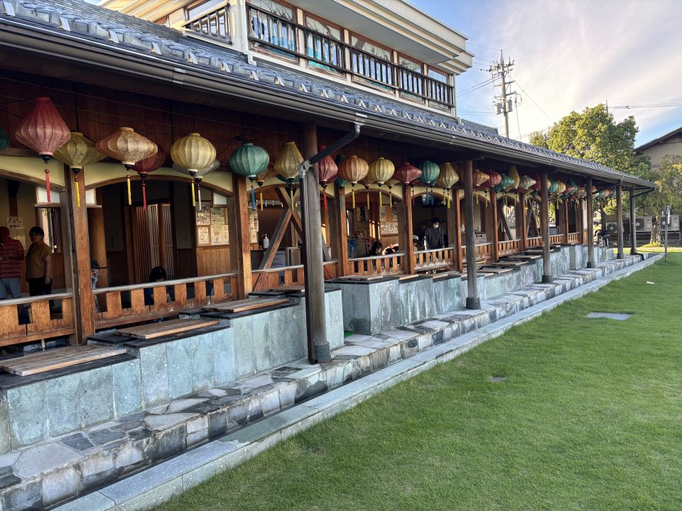 さて、時間も押してきたので本日のお宿、芦原温泉へ。バスを降りると、どー-んと足湯。 無料で利用できます。 バスで移動中、お宿からそう遠くない所に割と大きな地元のスーパーを 見つけたので、お宿にチェックイン後、ササっと買い物に出かけました。 持ち帰りたい地元の食材があったので、ここで永平寺御用達の米五みそと ソースカツ丼用のソースをゲット。 道中、ダンナがどこで道草くってるのか突然消える。 一体何を見つけたのか訝しんでると、ニマニマしながら田んぼから出てきた。 見て、見て~ と携帯を差し出すので見たら、とんびの写真を撮っていた らしい。ピー、ヒョロロ~。 変なものに興味示すねんな。 宿に戻ると、そろそろ晩御飯の時間。 部屋のシャワーでサッと汗だけ流して楽な服に着替えて ライブキッチンのビュッフェへいざ出陣。 すげー品数!! 目の前で握ってくれるお寿司、ステーキ、牛タン、蟹、 天ぷら、カレー、刺身、イタリアンから中華まで何でもある~。 その数80種! 食材はほぼ福井産というこだわりよう。 食べるのに夢中でブログ用の写真撮るの忘れた。 日本酒・ビール・ワイン・デザートも飲み放題、食べ放題。 しかし、大型連休でもないし、平日狙って行ったのに宿はけっこう混んでいて 人気のお料理はすげー行列だったので、ダンナと二手に分かれて食べたい物を ゲット。ワタシは○○取って来るから、あなたはxx取ってきて~ みたいな。 福井でしか食べられないというメギスという魚を食べたかったのに いつ挑戦しても焼いてる途中か持ってかれた後だった。残念! ダンナはエビマヨが気に入ったらしく何回も取りに行っておりました。 もぉ~、お腹パンパン。 部屋で少し休憩してから温泉タイム。 北陸最大級の露天風呂。 温泉で写真撮るのは難しいのでネットで拝借した写真を。 翌朝も5時半に起きて朝風呂。 極楽じゃー。