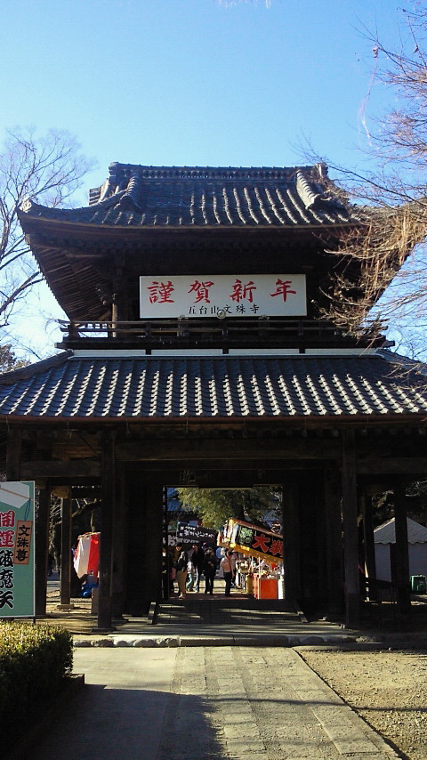 久々に実家に行きました 例年、1月1日に家族で初詣に行くのですが 今年は妹家族が1日にやってくるので、2日に初詣に行くことになりました 1件目は 野原の文殊様 として有名な 五台山文殊時寺 です 由緒によると、智恵をつかさどる文殊菩薩を本尊とするお寺で、 「武州野原の文殊様」と呼ばれて、丹後の切戸(きれと)文殊、 米沢の亀岡文殊とともに、日本三体文殊の一つにあげられています。 鎌倉時代に関東地方の平和を願って建立され、文明13年(1481年)の 火災で大部 分を焼失し、文明15年に四ツ山城主増田四郎重富によって 再建されました。 受験・学徳成就・交通安全・身上安全・厄難消除・家内安全・商売繁盛 などのご利益があります。 曹洞宗、五台山文殊寺(古くは、五台山能満寺という天台宗の古刹で ありましたが鎌倉時代に消失し、比企群高見の四ツ山城主 増田四郎重富が再建し、宗門を曹洞宗に改め、五台山文殊寺とした そうです。 ここには何度も来ています でも、自分の事はあまりお願いしていなかったように思います 今回も、バンドのメンバーのことをお願いしただけで 帰ってきてしまいました 冬でも、咲いている桜がありました また、私の守護本尊 阿弥陀如来像がありました その尊いお姿に見入ってました