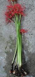 今年ほど、彼岸花を意識した年はない自分のなかでは、彼岸花がちょっとしたマイブームになっていた関東近郊で、彼岸花の名所はないかと調べると、埼玉県日高市にある巾着田という場所が曼珠沙華の群生地だという休日の今日、早速曼珠沙華を見るために、群生地へと向かうネットで調べたら、曼珠沙華は今見頃を迎えているという逸る気持ちを抑えながら、電車に揺られること約2時間…ちょっとした小旅行である目的地の巾着田の最寄り駅である西武池袋腺の高麗駅で下車今冬、蝋梅を見に秩父を訪れたときに高麗駅を通り過ぎたのだが、その時は駅前は店舗も少なく、閑散としていたが、今シーズンは曼珠沙華を見に訪れる観光客目当てか、駅前には特産品や飲食物を扱うテントが設けられて賑わっていた自然と巾着田へ向かう人々の流れが出来ているので、後をついていく路地では、名産なのか?栗や曼珠沙華の球根、工芸品、花なす等が売られ、道々には彼岸花が咲いている歩くこと10数分で、川が見えてきた高麗川(こまがわ)である仮設橋を渡り、右側は深々とした緑に高麗川の緩やかな流れ、左側には見頃は若干過ぎたのか、ほとんどが色褪せた曼珠沙華を見ながら、大小の石が入り混じって歩きづらい河原を歩いていくしばらく河原を歩くと、200円を払い入場券を貰う入場券には日本一の曼珠沙華群生地と書かれていた日本一の群生地とはこれいかに?入場ゲートで券を渡し、いよいよ曼珠沙華の群生地へと足を踏み入れる巾着田曼珠沙華公園である日高市内を流れる高麗川の蛇行により長い年月を経てつくられた土地の形が、近くの日和田山から見ると巾着に似ていることから名づけられた“巾着田”には、菜の花・コスモスなどの花々が咲き、なかでも曼珠沙華群生地は100万本の花々が辺り一面を真紅に染めるという“赤い絨毯や!”これが一目見ての感想地面を覆いつくすほどに咲いている曼珠沙華は、赤い絨毯を敷き詰めているようであり、血の池地獄をも連想させるまるで、この世とは思えない世界が目の前には広がっていた遠めで見ると圧巻なのだが、入場する際に貰った案内図を見ると、自分が足を踏み入れた場所は早咲きの群生地だったので、曼珠沙華を一つ一つ見ると見頃は過ぎ、赤い色は色褪せていたそれにしても、結構な数の見物客である団体、家族、カップル、人々は思い思いに花や、曼珠沙華をバックに記念撮影をしている高麗川の流れに沿うようにして歩くと、もう一つの群生地があるこちらは遅咲きなので、早咲き群生地で見たものより曼珠沙華も赤々としていた緑とのコントラストが目に鮮やかに映る赤い花に混じって、数本の白い彼岸花を発見した白い彼岸花をこの目で見たのは初めてだったので、ちょっとした興奮を覚えるのであったしかし、こうも曼珠沙華の数が多いと、圧巻なことは確かなのだが、曼珠沙華が持つどこか妖しくも儚げない風情が感じられない群集の中に咲いているものよりも、かえって、ちょっと道の外れに咲いている曼珠沙華のほうが生き生きとしているように感じたそうは言っても、やはりこの赤く燃えるような群集は見応えがあるわざわざ遠路はるばる訪れた甲斐があった日頃の疲れが溜まっているのか、長いこと電車に揺られていたせいかは判らないが、曼珠沙華を見て回って疲れてしまったのだが、少し離れたところにはコスモスの群生地がある“コスモスの摘み採りの受付時間はまもなく終了”と放送が流れていたので、コスモスを収穫できたのだろうそういえば、高麗駅から巾着田へ向かう途中、新聞紙に巻いてコスモスを持っている何人もの人とすれ違った母はコスモスが好きなので持って帰ればさぞかし喜んだろうが、体力が気力についてこなかったので断念した思う存分曼珠沙華の光景を楽しみ、巾着田を後にして高麗駅に向かう途中、彼岸花の球根を扱っている店の前で足を止めた赤い彼岸花は勿論のこと、白・クリーム色・黄色・オレンジ・ピンクといった色とりどりの彼岸花の球根が売られている珍しいオレンジ色の球根を買おうと思ったのだが、見本として飾られていた切花の色があまりにも毒々しいオレンジ色だったのでやめ、散々店先で迷った挙句、白とピンクを掛け合わせた品種だという淡いピンクの球根を3つだけ購入(1球500円、3球1000円)したどんな花を咲かせてくれるか楽しみである