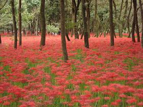 12日付けの讀賣新聞の地域版に、葛西臨海公園で彼岸花約200本が咲いているという記事を見つけた葛西臨海公園とは、文字通り海の近くにある公園で、広大な敷地には巨大な観覧車や水族館にホテル、野鳥を監察できる場所や人工に作られたなぎさ等、自然に溢れた施設が数多くある今日は仕事が休みなので、葛西臨海公園に出かけてみた200本という数が多いのか少ないのかは判らないが、群集で咲いている彼岸花を見たことがないので、一目見たかったからである彼岸花秋の彼岸の頃になると咲くことから呼ばれるようになったという別名は曼珠沙華(まんじゅしゃげ)“天上の花”という意味で、おめでたい事が起こる兆しに、赤い花が天から降ってくるという仏教の経典によるもの自分は彼岸花が好きではないもともとが黄色や赤といった主張の強い色の花を自分は好まないのだが、彼岸花を見ると、赤い花といい、独特の花の咲き方がどことなく毒々しさを感じるからだ彼岸花は別名死人花とも呼ばれる根には有毒成分が含まれていて食すると死に至ったり(山村美紗氏の小説でも彼岸花の毒を使った小説がある)、墓の近くに咲くことからそう呼ばれるそうだどことなく陰を感じさせる由来や別名も、好まない理由に一役買っているのだろう平日の午後だというのに、公園はカップルや家族連れ、学生(遠足?)等でわりと賑わっていたカルガモが泳ぐ池や大観覧車にはろくに目もくれずに通り過ぎ、お目当ての彼岸花を探すと言っても、何しろ広大な敷地面積である新聞記事に載った彼岸花がどこに咲いているかわからないとりあえず、宛てもなく公園内を散策していると彼岸花を発見!が、おおよそ記事に載っていた200本には程遠い、十数本の彼岸花が所々に咲いているだけであったそれでも彼岸花には違いないデジカメで撮影しようと、急な芝生の斜面を下りて、茂みをかき分けて近づく草木の緑に囲まれたなかに咲く、彼岸花の鮮やかな赤が目を惹く風に揺られる彼岸花の光景はなんとも幽玄であるゆっくり鑑賞したいのだが、そうもいかない草むらの中なので、とにかく蚊が多いからである花を撮影している僅かな時間でも何箇所か手の甲や腕を刺されたそれにしても、彼岸花をこうも間近で見たのは始めてかもしれない案外、彼岸花って可愛らしい花の形をしているんだねなんだか新しい一面を見たような気がした結局、公園を一周歩き回ったが、記事に載っていた彼岸花の群生を探し出すことはできなかったどこか人目のつかない所で、ひっそりと咲いているのだろうか?公園の駐車場に停めていたマイカーを発進させ、料金所渋滞で待っている途中、何気なく芝生に目を向けたときである!!!!!ゆるやかな傾斜になっている芝生に、湾曲した横1列となって彼岸花が咲いていたそれは、まさしく新聞記事で見た写真と同じ光景であった全体的に横広がりに間延びした感じで咲いているので、正直言って記事に載るような光景では無いと思ってしまった彼岸花の花言葉は“悲しき思い出”どこまでもミステリアスな花である