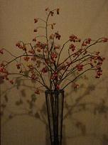 すずばらを仕入れたそれぞれに分かれた枝の先端に、艶々とした赤い実をつける秋らしい枝もの枝には小さく鋭い棘が沢山ついているので、取り扱いには気をつけなければならない自分の部屋が殺風景なこともあって、3本ほど自宅用に購入した部屋には、長い花が活けられるように高さ1メートル程の花瓶があるので、そこに水を張り、すずばらを活けこむ活けるといっても、すずばら自体が複雑な枝振りで1本1本の表情はまったく異なり、動きがあるので、花瓶に挿すだけで様になる殺伐とした壁際にすずばらを活けた花瓶を置くと、どことなく寂びれた風情を漂わせる枝ぶりと相まって、絵になる華やかな花を活けると部屋も明るくなりいいが、日本の“ワビ・サビ”を感じさせる秋の花を飾るのも、部屋が落ち着いていいものである