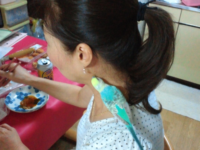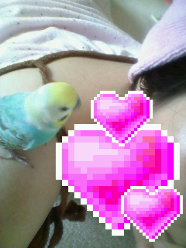 今週は大好きなママがぎっくり腰でずーっとおうちにいたのでパリスは大喜びでした。私も家にパリスが一人じゃないと思うと嬉しいのだ。あら、可愛いポフポフ頭筆毛の中にパリスの可愛い赤い血液を見るのが好き!もお、その筆毛を一本おくれぇえww何もかもが狂おしいほど可愛いぜww可愛すぎてパリスの念力が見えるよ。*★ ~☆・:.,;* `*:;,.★ ~☆・:.,;* `*:;,.★ ~☆・:.,;*さてこの休日の記録を。~土曜日~いいお天気でした。パリスもとってもご機嫌!!朝9時過ぎ頃、ケージを洗うために早めの放鳥。大喜びで飛び回ったり、水の音を聞きに来たり、掃除のジャマをしたり、歌ったり走り回ったりキスしに来たり♪あまりに元気いっぱいだから私も嬉しくてたまらなかったー。愛鳥の元気と健康が最高に嬉しい(*´∀`)土曜日は他にもバタバタお掃除してたから、食卓の上もごちゃごちゃに。それはパリスにとってはパラダイス~卓上塩が大好きなんだよねwwwずっと卓上塩に話しかけてるのwwwかわいいwwwwwwwインコはほんと好奇心旺盛で、ごちゃごちゃしてる所に行って探検するのが好きだよね~。掃除が終わってママと私とパリスでゴロゴロしてまったりタイム。パリスは私のお腹の上で歌ったりウトウトしたりしてました。あまりにリラックスした空気に私もついついウトウト・・・・・だってお腹の上の毛玉の温度が心地いいし、本当に気持ち良くて。それで、なんと10分ほど寝ちゃったんです(・∀・;起きて「ハッ!!!!!!!」としたけど幸いパリスはまだお腹の上で喋ってました・・・よかった。しかし幸せな昼寝だったなぁ・・・・。でも、放鳥して寝るなんて本当にイケナイ事だ。危なすぎる。でも、幸せだった・・・(笑)この日はお昼もたっぷり遊んで夜もたーーっぷり遊んでミカン食べて枝豆食べてバナナも食べて大満足で自ら18時45分頃にお眠りになられました☆~日曜日~天気は雨。朝もいつもより40分程お寝坊して起床~。気圧が低いせいか朝から餌入れの下で二度寝、三度寝してるのを見かけましたwwお昼は11時~13時半まで放鳥。ママの胸の上で「のど自慢」を見ながら大熱唱してました♪物凄い大熱唱だったし、雨だし、自分から機嫌よくケージに戻りましたよ~ほぉんとお利口さんだった夜はママの傍から離れない!!!と言わんばかりに夜更かしして、私にアッチ行け!と攻撃して、散々ワガママ放題やった末にお眠りになられました。こんなに可愛い子が私の愛鳥でいいのでしょうか。出会いに感謝してもしきれない。可愛くて大事で大切でたまらないのだ。にほんブログ村