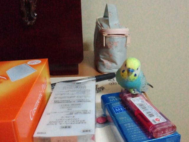 メイクのジャマをするのは毎日のデフォルト。いたずらなお顔でまずは手の上に陣取る。そして獲物を確認。キスしたりお喋りしたり楽しそう。でもね、その間私は中途半端にアイライン引いた状態で何も出来ずにきもちわるいのよ、パリス。大満足のジャマっこ。毎日ジャマされて時間もかかるし正直イラっとすることもあるけれどお化粧中に肩によじ登ってかまってくれるのを待ってるパリスにチュっとしてあげると嬉しそうに頭膨らまして「チィ♪」とか言われるとこれ以上なくキュンとして萌えてしまうんだなwかまって欲しい青いふわふわ毛玉以上にキュンとするものってこの世界どこにもないと思う。でもパリスにも何度も言ってるけど、可愛いから許すんだからねっ( ̄∀ ̄)*★ ~☆・:.,;* `*:;,.★ ~☆・:.,;* `*:;,.★ ~☆・:.,;*昨日、何度かうちに来たことのある男性になんとパリス自らKISS!!!びっくりした~!!私とママ以外にキスするなんて絶対にありえなかったのに。トコトコ走っていって、ブチューっとキスしたりお喋りを聞いて言葉を覚えようとしてました。声のトーンが気にいったのかな?すごく可愛くて嬉しい出来事でした相変わらずティッシュと一人あそび大好き。そろそろオモチャ替えようかなっ。にほんブログ村