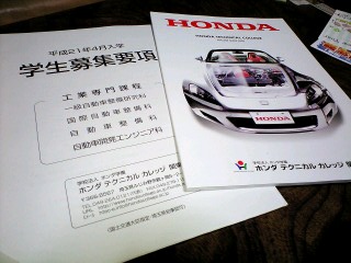 ◆ あすなろ あすなろ 明日はなろう 大きな檜に明日はなろう ◆っつ訳で、まだ学生な子供達にはまだ定まってなぃたくさんの選択肢がある。ま、大人にもあるんだろが、そのうち生活固まってくると動こうにもなかなか今の立ち位置からいろんな事情でそぉ腰軽くは思った通り、身動きなかなか取れなくなったりまた、、体が、心が、脳みそが、意欲が堅くなったりセオリーとルーティンワークで固まってしまぃなかなか この先未来の選択肢を選ぶ事さぇ投げ捨ててしまったりもしてしまぅもので。。しかーーっし、かかし、うちの末っ子可愛い次男坊は、今年高校3年生になるのであった。技術高へ通っている事もあっていろんな工学部やら専門やら、いろんななんつの選択肢の学校やらの書類を選んで取り寄せたりもしている。へぇ。。ホンダ・・・ 郵便受けに入ってたよぉま、、、、、そいや、あまりに仕事が暇なので(しょがなぃのですよん。うちカルソニックの下請けでふから(どこに限っても今、車製造業界で忙しいとこは無いと思うが)暇だーー 暇だーーの 意思表示をしてたら(会社でお茶ひきまくるのも、飽きるものでふ)たくさんのCAD図面が入った作業指示書やら(わたくちは一応CADも扱えなぃ事もにゃぃ)あちこちに出す見積もりやら、外部提出書類やらはてさて、止まってしまったおぢちゃんのパソコンのリカバリから自分(の仕事は暇ですけん)とはあんま関係なぃ下請け仕事がたくさんまわってくるよになってしまった。。『おぉぉぃ、下請けあがったかぁ』はぃ♪まだです。重すぎるですよぉぉ『おぃ親父。まだ仕事あるぞぉ』(親父と呼ぶなっ!)は~ぃ。土曜日まででいぃですか『だめ、明日』『ぢゃ、明日の午前ちゅまで』 ←で、今日帰ってきた。事務員さんにリカバリやら、無くなったデバイスの行方やら(自分のパソでにゃぃ)はてさて業務外の図面仕事までしかし、特別お手当てが欲しいなどと思ってはいけなぃ。お仕事があるだけで幸せなのである。(毎朝見る聴くTVのニュースやナック5の痛ましさよ・・・・)18万の基本給がもらえる自分を幸せと思わなくてはいけなぃ。。ま、働くの好きなので お茶ひきまくるよりは(ほんと年末、年明け2,3日 哀しいくらぃに暇だった・・・)あれこれ言いつかって作成書類や雑務に追われて(どだ?こりで文句はあるまぃ)なんて提出してるほが、幸せではある。◆っつ訳で、本日お仕事ちゅ。可愛い姪っ子 てるちゃんから おばちゃん宛てに絵文字がたくさんたくさん入った可愛いメールがお昼に来たのであった。>○○での面接の練習を友達としてたんだけど…>>『本校を選んだ理由は』っていう質問で、>「将来販売と事務職の両方が出来る金融関係の職業に就きたいと考えいます…ナドナド」>って言ったら― そんなコト言ったら笑われるしッ資格必要無いじゃんッ!!>>って言われちゃいました>おかしいかなぁ>おばちゃんだったら どんな風に 言う >『本校を選んだ理由』>『本校を選んだ理由は』っていう質問で、>「将来販売と事務職の両方が出来る金融関係の職業に就きたいと考えいます…ナドナド」>って言ったら― そんなコト言ったら笑われるしッ資格必要無いじゃんッ!!>>って言われちゃいました>おかしいかなぁ>おばちゃんだったら どんな風に 言ううぅん おばちゃんだったらそだなぁ『普通科だけでは学べない技術高校ならではのいろいろな専門技術を学びながら、 高校生活で自分の適性をつかみたいと思い○○○○技術高校を志望しました』かにゃ♪獣医さんや看護士さんみたいなはっきりした志望がにゃい場合中学生でなんとなく金融とかなんとなく販売。どっかの事務なんて就職分野あぃまぃみぃな返答するより『これからいろいろな事を学んでいきたい 意欲はある』みたいな答え方のが好感かも。ぢゃ おうちに帰ります♪てるの合格を☆に願ってうぃっしゅ◆呑みながら、御飯の支度をしながら姪っ子てるの志望高は、ちぃと同じ学校なので『おぉぃ 先輩~~ てるからこんなメールが来たんだけどぉぉ ちぃ現役の先輩ぢゃん。。ままの返事、ど思うぅ。』年始にあった時に 偏差値がお勉強の甲斐あって61を超えたので、 (・・) ・・・おばちゃんは中学の時偏差値68あったよ 『天才ーーーーっ!!』って言われる・・・・たかがそんくらぃで・・・(うちの家族身内は揃いも揃ってあまりガッコの成績がよろちくなぃので)そこで『しなぃとなまる。したくなぃならしなくてもいいけど(持論) 続けて学ぶ訓練しにゃぃと、あっとゆぅ間にバカになるにょ♪』←身を持って実説明 『おべんきょも体操も継続する心がけで成長するんだじょぉぉ♪』姪っ子なら県内でももっとランクが上の学校が余裕で安全圏なので、技術高一本に絞るのなんかもったぃなくにゃぃ?っと言ったら、てるちゃんにたしなめられてちまった。 たかよもよっちゃんも、同類だそだ(笑)秀も選べる高校はもっとたくさんあったのに軽音楽が一番近い学校だからって、高校選んだもんなぁ(思い出し笑い