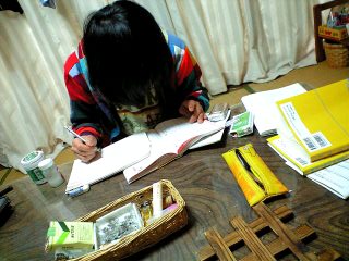 『ぢゃ、秀、次いくね “体”の部首は “にんべん” “住”の部首は“にんべん” “化”の部首はぁ?』『にんべん』『ヒだよぉぉ』『ぢゃ、 “会”の部首は“ひとやね” “介”の部首は“ひとやね” “傘”の部首は“ひとやね” “合”の部首はぁ?』『ひとやね』『口だよぉぉ』(ちなみに、“金”の部首は “金”である)(部首はずるぃ。。。。。)『えっとねぇ・・・・』『ぅぅん・・・書けなぃや・・・』っつ訳で、昨日の午後は 秀と2人、居間に籠り秀はなぁんかたらぁんとTV見たり、電話したりあたしはずっと漢字の勉強しながら、話したりして『秀も試しにやってみそ』な、漢字な午後を過ごしていた『ほぉぉぉ 新しい彼女は16?高校生 高2?』『高1』『幼いっしょぉ』『ん、幼い。。で、小さい。。で、痩せてる』『へぇぇ 今回小柄系かぁ』『ぢゃ、次いくね “凹”の部首は “うけばこ” “凶”の部首は“うけばこ” “出”の部首もなんと“うけばこ” “歯”の部首はぁ?』『ぢゃ、秀つぎいくよ』『えっとねぇぇ 「いまとなりで漢字してる人がいてさぁ」』←彼は電話ちゅ『うけばこ』『“歯”の部首は“歯”だよ』『部首はずるぃ。。』『ん♪部首はずるい。ぶすはずるぃか まま知らん』で、午後ぢゅ ストーブでことこと軟骨スープ(煮込みかな?大根一本)が煮えていた『秀 味みて 塩足りる 足りん』『ちょっと味薄い。』『えぇっ』『どした?』『いま、「東京 雪」なんだって。』『あぁ、、今晩冷えそだねぇ。。つらぃねぇ』『7時には帰るよ。仕事の前に少し寝たい』『昼間あんなに寝たのにぃ』『うん、少し寝ないともたなぃ』『そっか』『早めに夕飯するから食べていくでしょ。』『ん食べてく』『少し呑んでく?』『呑まない 朝の仕事がきつぃから』『そっか♪』昆布さぁ 出汁昆布の自家製昆布煮なんだよぉ『食ってけっ!植物繊維と海藻!』さ、、ちぃは遅いらしぃしぱぱお風呂から出てきたから先に食べちゃおっか♪たんとお食べ♪そ、今日は鯵あんた好物でしょ♪がっこは、ど?仕事はど?あっちはど?なぁんて、、うちにいた時にはしなかった(たりまぇだ)話を連れと秀がしているたまぁに口を挟みながら、、ま、、何になるとかまだ決まんなくてもいぃさ(秀は、忙しいなりに 学校の勉強がとてもおもちろぃという)「社会に出てなんの役に立つのかわかんなぃんだけどさ」「役に立つ 立たないぢゃなくて、おもしろいなんて思える事 専門で学べる時間があるなんて 人生の中で幸せな事よ (TT) 大人になって生活と仕事に追われるとなかなか見つけられん それでさぁ、学校選んでそっち行ったんだから まだ学生のうちは、学ぶさ。あとはそれから まだ19なんだし♪」「ん♪」はぃ♪おそまつさま♪秀に食べられるたぁ 鯵も本望であらぅ。帰り際「あたしのメガネぇ」秀は今回帰宅するのに、めがねをかけてこなかったのであたしのメガネをかけたまま 玄関出てしまった「おっとやばぃ」眼鏡の形も似ているが、近眼度合いも似ている・・・ぱぱには、あぁんまばれなぃよに(笑)ま、、そこそこあっちで19歳な遊びもしているらしぃあれで、ぱぱ 意外とお堅いからさ。。「知ってる(笑)」うん、満喫しておぃで。。それでうちだしたんだからさ「うん」うん、またいつでもご飯食べに帰っておいで「うん」「仕事頑張るんだぞぉ」 玄関で連れが向こうに歩いていく秀に声をかけている「風邪ひかないよになぁ」「もぅ引いてるよ(笑)」そして、ひとやねの下、おうちの御飯をたんと食べそして、秀はまた 今の自分の居場所に帰ってしまったもぉじき一年。今年で二十歳。どんな息子になるんだろぉ。。こんな息子になりました。。ってとこか。。いつになったら、もぅ親元はなれた、しっかりしたと ひとごこちがつくのだろぉ・・・