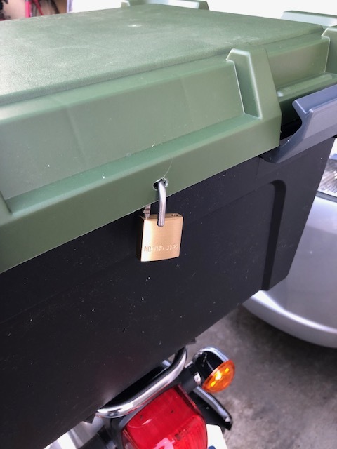 一応、気休めかもしれませんが、南京錠もつけておこうかなと穴あけ
