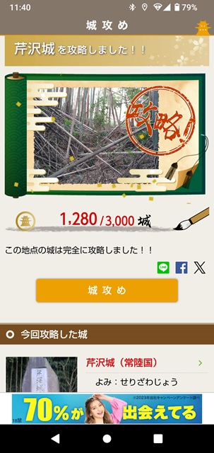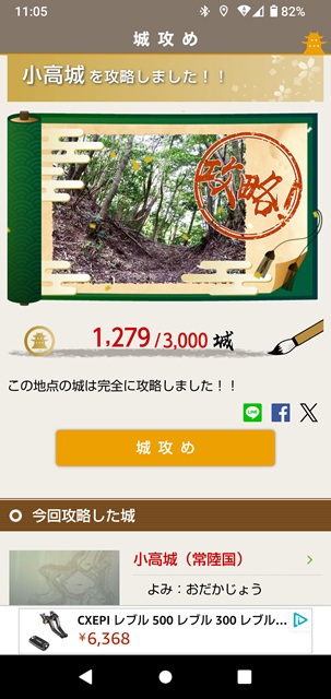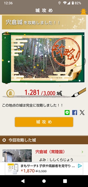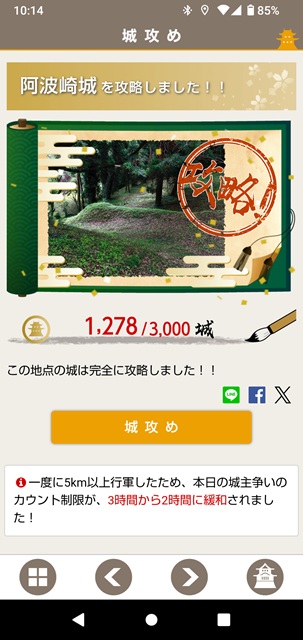 (アプリ上に登録されている城跡にピンポイントアクセスすると記録上リアル攻めと記録されるんです)
