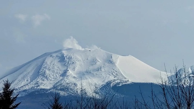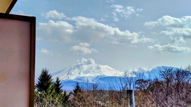 噴煙が晴れた際には千トン岩が見えます_山頂付近にある黒い点がそうです