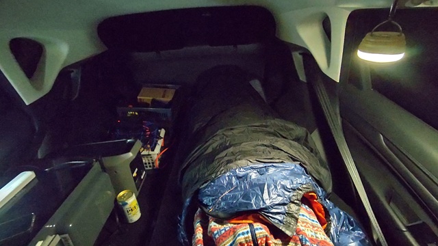 ちょっと追い飲みしたところで寒すぎるので、寝袋IN