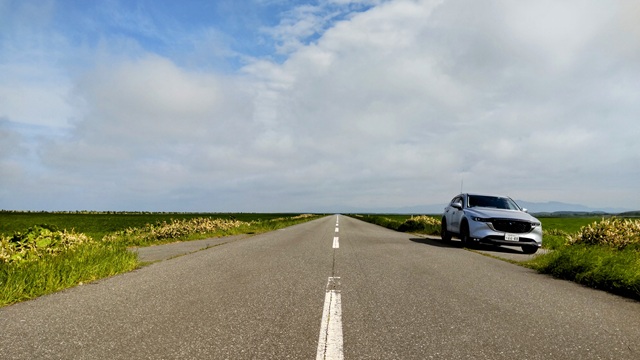 以前と変わらない国道をサロマ湖方面へ車走らせ、途中国道から道をそれて一方通行の林道へ
