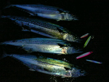 いつもは着底→ロングジャーク→ジャカジャカ巻き→ワンピッチ→ただ巻きが基本なんですが、それで食わない時は着底→ただ巻き何ていう、おとなしい感じも有りということなんですね。ジグはムーチョルチアが良かったように思います。