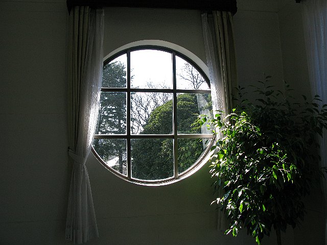 2008.01 港が見える丘公園 イギリス館 ○窓 1937年 かつての英国総領事公邸…二階の左右の隅に珍しい丸い窓…今日はじ~っとこの景色を見つめています♪