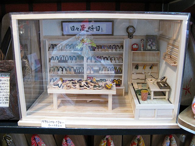 2008.03 水上温泉 お土産屋さんに下駄屋さん…今日は「日々是好日」♪ 桐の下駄が有名な処…周囲に古い下駄屋さんありて…下の女性用の桐下駄と比べてその繊細で精巧な造りが…棚の鼻緒や下駄屋の仕事場…そして掛けた額「日々是好日」…欲しくなりました♪