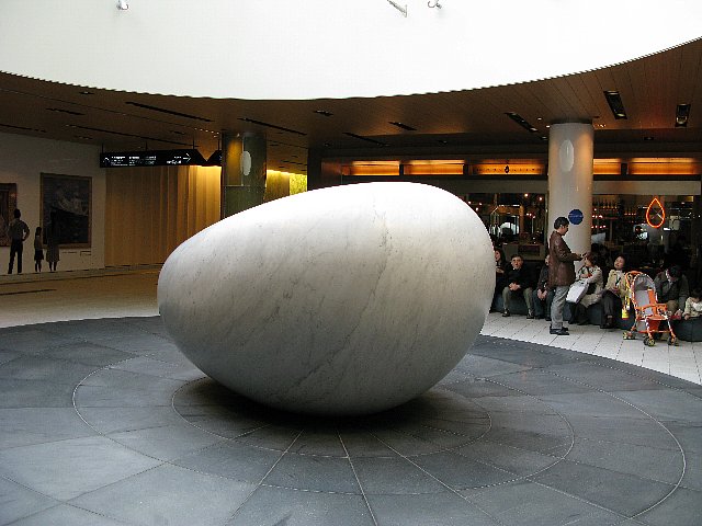 2008.03 東京ミッドタウン 意心帰 作:安田 侃 最初にこれを観たのがこの写真の位置でした…直感的に地上の黒い石と同じ作者と感じました…上下に置かれて引き合って…隕石の落下場所…卵…文化のゆりかごかな♪