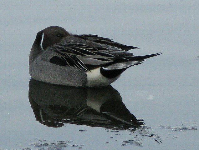 2008.03 浜離宮 潮入の池 野鳥(かも?)…この固体のみ首を真後ろに向け休息中でした…野鳥さんはまったくわからず…なんて名の鳥さん…もうすぐ北に帰るのかしら?
