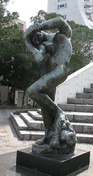 2008.02 大通り公園 「瞑想」ロダン 始めて散歩に大通り公園…桜木町から入り口の広場へ…いきなりロダンの彫刻「瞑想」…いとも簡単に触れられて凄い事です…しかし運河を埋めたこの公園を奥に進むにつれ…最初にロダンでいいのかしらと…横浜の下町にロダン♪