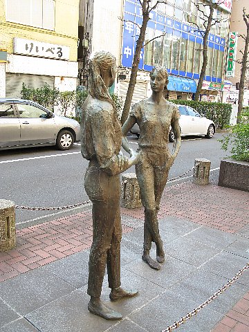 2008.02 ニケとニコラ 作:朝倉響子 横浜 馬車道…好きな散歩道…ちょっと脇道し相生町方面へ…素敵な二人の女性が道端で…ここは幕末の開港と共に生まれた道…馬車道♪