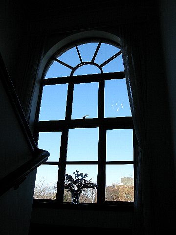 2008.01 イギリス館 窓 階段の踊り場から窓越しに…外の冬景色…一輪の花が優しく♪