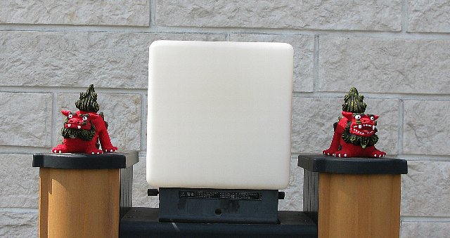 2008.04 新築された家の門柱…赤いのが対でシーサー…沖縄の守り神が可愛い姿で…きっと災いを振り払い楽しく生活できるでしょうね♪