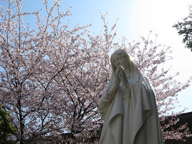 2008.04.06 カトリック山手教会のマリアさまと桜 今日も雨です…横浜の桜は葉桜に…日曜日に観れたもう一人の恋人とさくら…キラ☆~♪