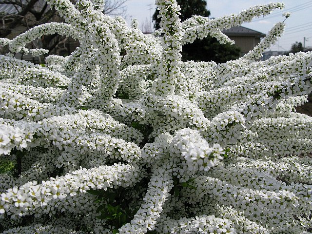 2008.3 雪柳 爆咲 さくらの花に誘われてご近所散歩…白くて触手の伸びたような異様な塊を発見…後に雪柳とある方のblogで…威圧系の爆咲…絶滅危惧I類とは…春は凄いとことん咲いて♪