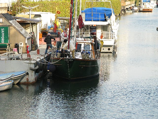 2008.03 浜離宮 ヨット 新年度が始まり最初の週末に…先日散歩の浜離宮…入り口の河川にあるヨットハーバー…古いタイプのヨットから帰着した一行…ヨーロッパの何処かの様相…絵になって浜離宮♪