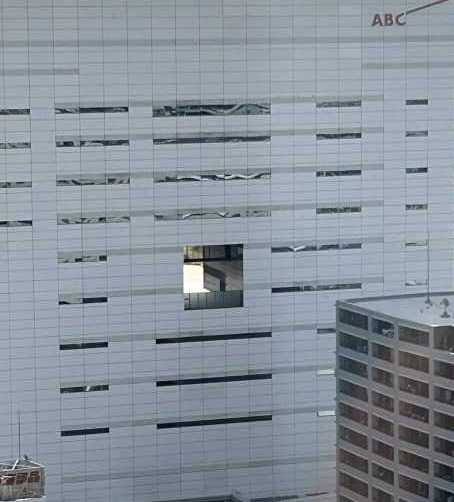 ホテルの窓から見える 大きな 立派なシエリアタワー中之島