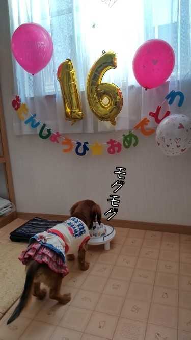やっとやっとこの日が来ました(╥﹏╥) お誕生日ってやつ!! 長かったーーーっ! 悲願達成ですわ( ̄▽ ̄;) 早くからウキウキしたらあきませんね_| ̄|○ +++ お誕生日前日の日曜日はパパちゃんがいたのでこの日にパーティーを・・ 朝からチアリーダーバリのワンピースを着てるラテを見て‥ 「若作りばばぁみたいやな!」って・・ 酷い言われようですが動じませぬ(;-ω-) さすがは16歳どすヾ(*‘ω‘ )ノ 滅茶苦茶嫌がられましたーーー(T-T) ラテちゃん!16歳のお誕生日おめでとーーっ! 何の変哲もないジャムパンにロウソクをば‥(;-ω-) 私のお昼ご飯どす(--;) ラテ「もう、なんなん(○`ε´○)」 着飾るとダメダメ弱子なラテなので、ハウスで我慢した、私(;-ω-) 写真を撮るのに嫌がられ、声を荒らげて喧嘩になってしまいました(T-T) まずい、拗ねた、怒った( ̄ᵕ ̄;) 急遽、予定していたラテのディナーは中止にしました(;-ω-) ストレスでお腹を壊されるのはちょっと(╥﹏╥) いつもの夕飯を食べた後、ちょっとかわいそうなので・・・ 焼き鳥にロウソクを使い回し(--;) ラッちゃん!焼き鳥たべよか~!! よっしゃ~ヾ(*‘ω‘ )ノ 味変するから待っときやーーーっ! ・・・洗われてただの鼻糞鳥になりましたとさ(;-ω-) お皿が溶けてしまいそうな位ペロペロしてました(´ω`*) +++ 元気いっぱいに16歳を迎える事ができて、とてもとても嬉しく感慨深いです(´;ω;`) 15歳は、ダックス界のプリンスのホッピーくんに「ラテちゃん♪お誕生日おめでとうと♪」と言ってもらえ、ちゅまにもしてもらえてアホみたいに浮かれてしまった、私が^^; 16歳は、凡ワンラテに戻り、1日1日を大事にゆっくりといこうな٩(๑❛ᴗ❛๑)۶ たまにはパパちゃんに甘えたってな(笑) 応援して下さった皆さま、本当にありがとうございました<(_ _)> あぁ、長かった‥。とても疲れました、知恵熱出そうです 笑 16歳を迎える事が出来たラテに ポチっとお願いいたしますm(__)m にほんブログ村 ポチっとお願いしますm(__)m にほんブログ村