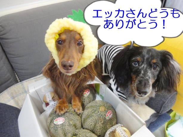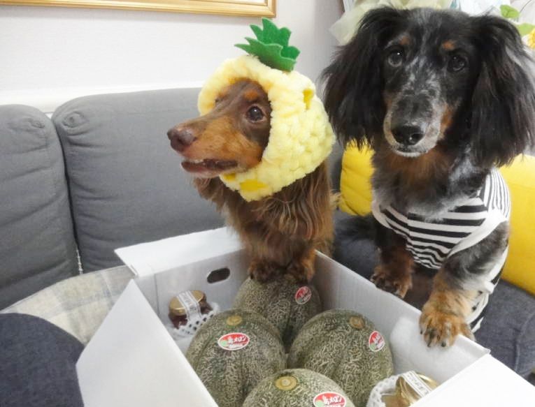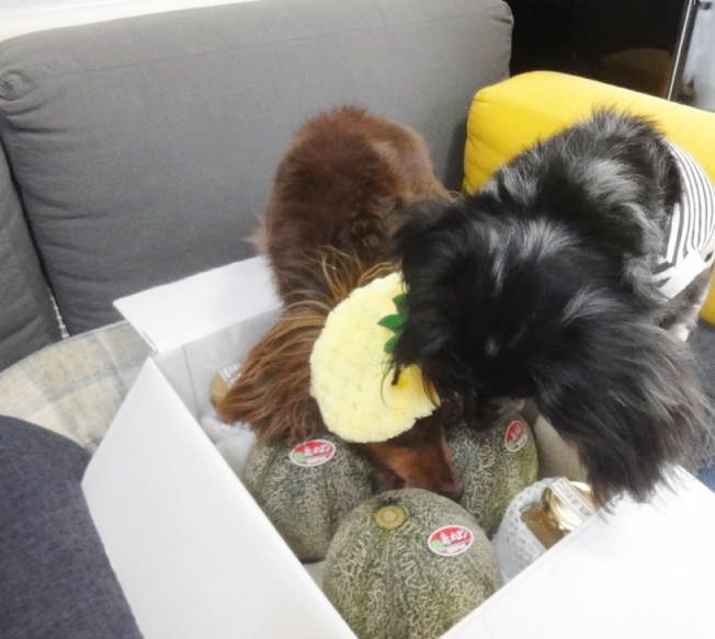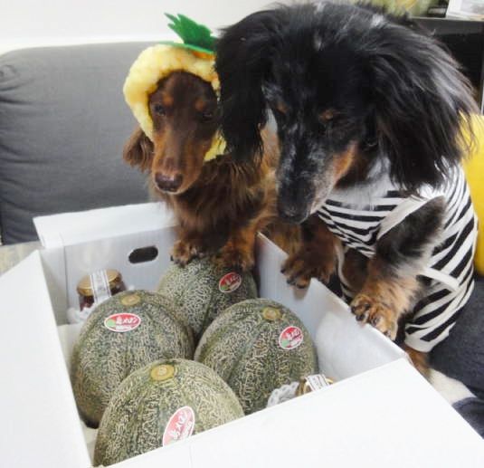 メロンなんてエッカさんから頂く以外に見たこともないもんね~なシエルとブラン