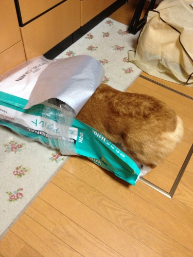 我が家はドッグフードを大袋で買っています。 大袋のまま置いておくと 酸化して傷んでしまうので 小袋に分けて保管しています。 小袋に分けているときも 必ず たろうが横にいて 落ちるのをすかさず拾って食べます。 空っぽの袋にまで 頭を突っ込んでます。