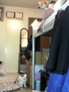 写真はあまり写りが良くないけどベットの上にいる弦ちゃんを下から